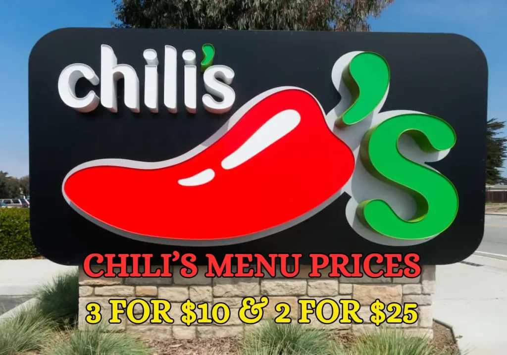 Chili’s Menu Prices: 3 for $10 & 2 for $25